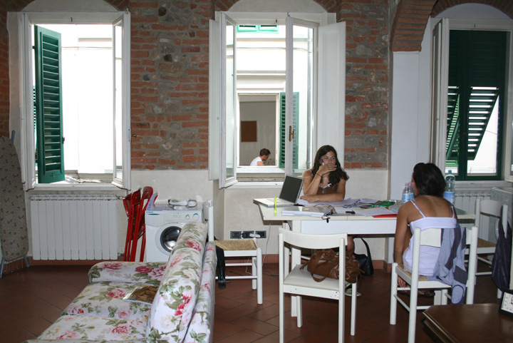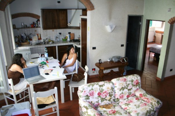 maybe it’s all the jersey shore i’ve been watching, but i’ve been thinking about florence a lot lately. n and i lived in the rooms pictured for five months, with three other girls. our windows looked onto an apartment across the way and in the middle you can see one of the guys playing his guitar. our living room couch remains my single favorite part of our entire place. through the lit room on the left is our bedroom where we slept in twin beds side by side, then there’s a christmas stocking hanging off the window, it was december when we left.